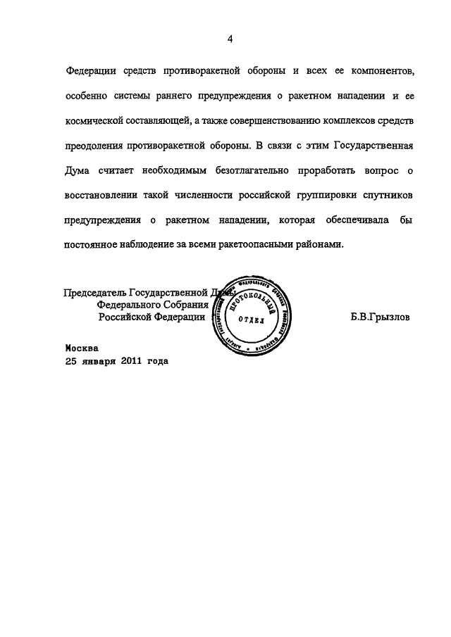 ПОСТАНОВЛЕНИЕ ГД ФС РФ от 25.01.2011 N 4765-5 ГД