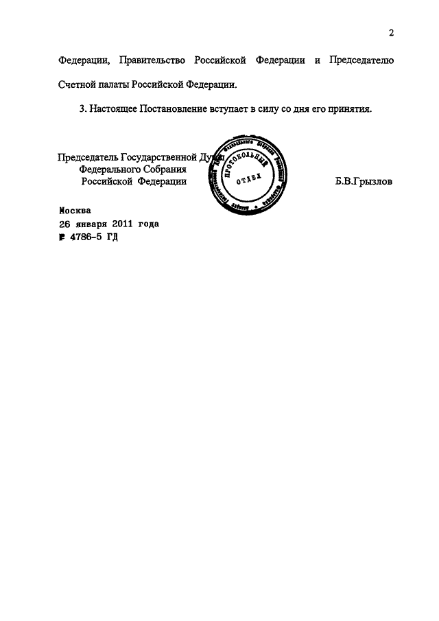 ПОСТАНОВЛЕНИЕ ГД ФС РФ от 26.01.2011 N 4786-5 ГД