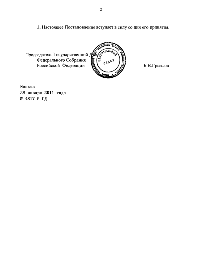 ПОСТАНОВЛЕНИЕ ГД ФС РФ от 28.01.2011 N 4817-5 ГД