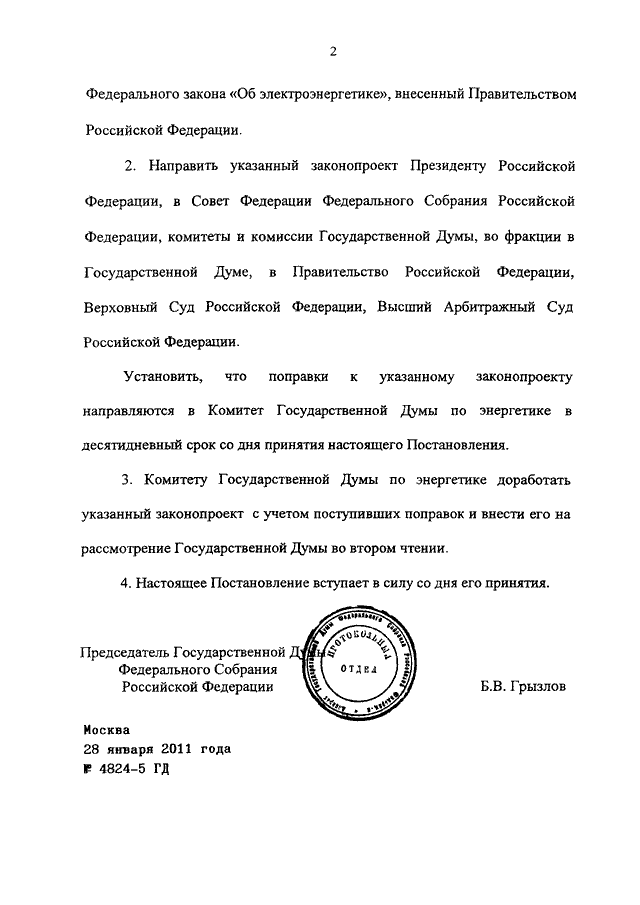 ПОСТАНОВЛЕНИЕ ГД ФС РФ от 28.01.2011 N 4824-5 ГД