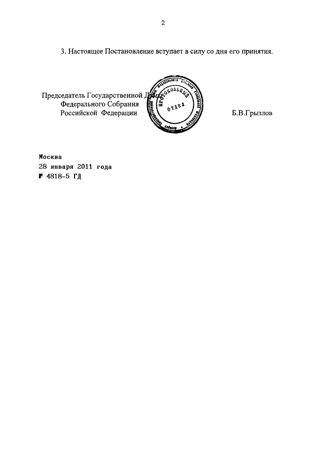 ПОСТАНОВЛЕНИЕ ГД ФС РФ от 28.01.2011 N 4818-5 ГД