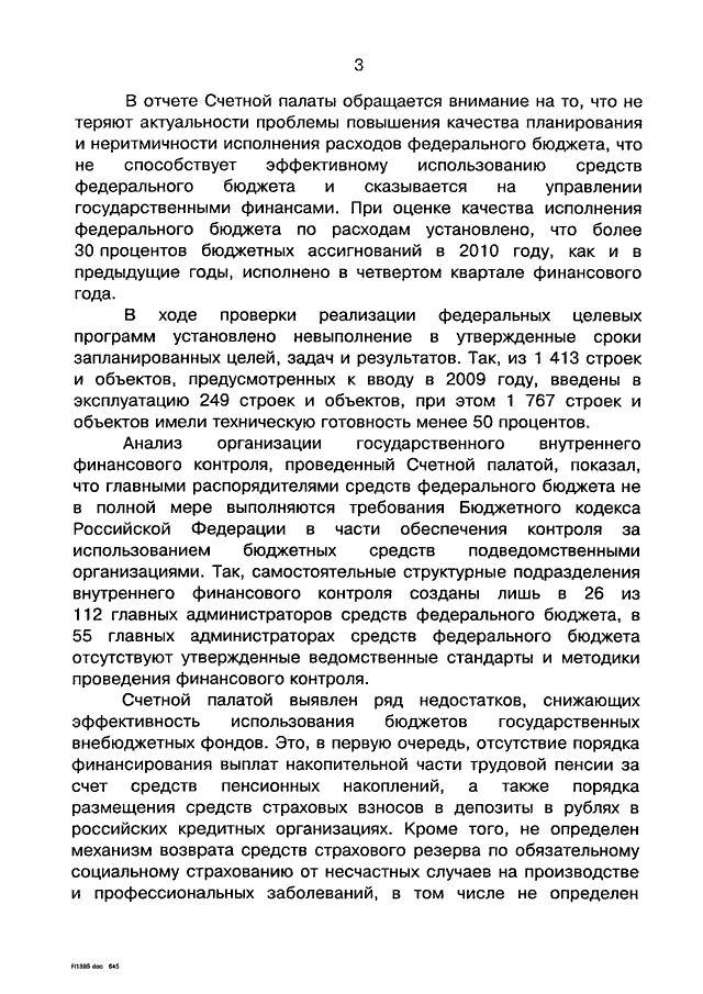 "ОБ ОТЧЕТЕ О РАБОТЕ СЧЕТНОЙ ПАЛАТЫ РОССИЙСКОЙ ФЕДЕРАЦИИ В 2010 ГОДУ"