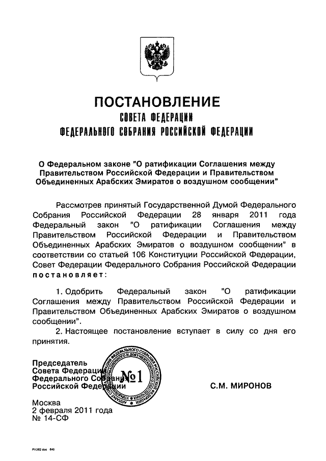 ПОСТАНОВЛЕНИЕ СФ ФС РФ от 02.02.2011 N 14-СФ