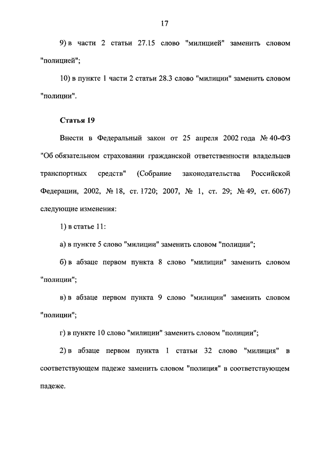 "О ВНЕСЕНИИ ИЗМЕНЕНИЙ В ОТДЕЛЬНЫЕ ЗАКОНОДАТЕЛЬНЫЕ АКТЫ РОССИЙСКОЙ ФЕДЕРАЦИИ В СВЯЗИ С ПРИНЯТИЕМ ФЕДЕРАЛЬНОГО ЗАКОНА "О ПОЛИЦИИ"