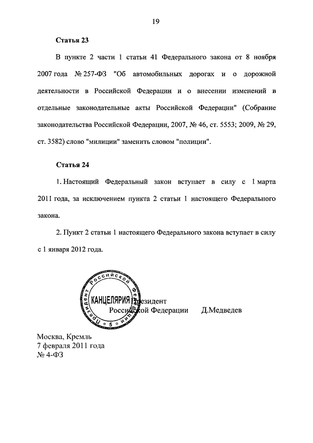 ФЕДЕРАЛЬНЫЙ ЗАКОН от 07.02.2011 N 4-ФЗ