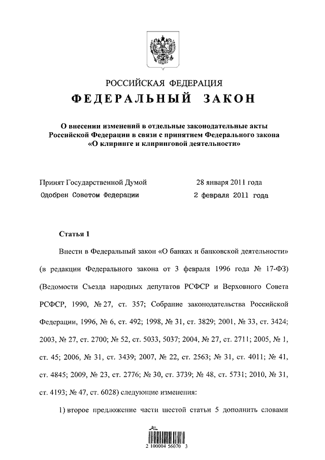 "О ВНЕСЕНИИ ИЗМЕНЕНИЙ В ОТДЕЛЬНЫЕ ЗАКОНОДАТЕЛЬНЫЕ АКТЫ РОССИЙСКОЙ ФЕДЕРАЦИИ В СВЯЗИ С ПРИНЯТИЕМ ФЕДЕРАЛЬНОГО ЗАКОНА "О КЛИРИНГЕ И КЛИРИНГОВОЙ ДЕЯТЕЛЬНОСТИ"