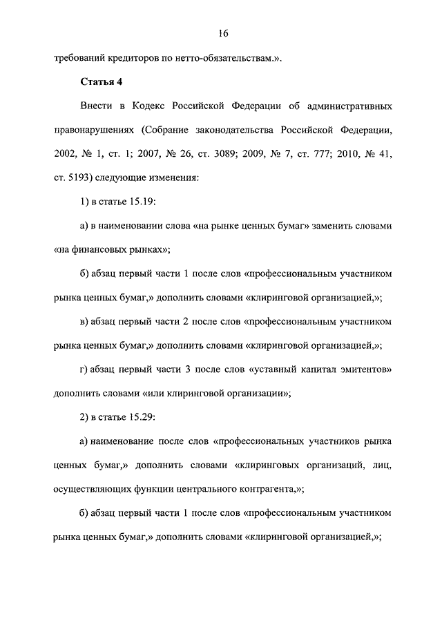 "О ВНЕСЕНИИ ИЗМЕНЕНИЙ В ОТДЕЛЬНЫЕ ЗАКОНОДАТЕЛЬНЫЕ АКТЫ РОССИЙСКОЙ ФЕДЕРАЦИИ В СВЯЗИ С ПРИНЯТИЕМ ФЕДЕРАЛЬНОГО ЗАКОНА "О КЛИРИНГЕ И КЛИРИНГОВОЙ ДЕЯТЕЛЬНОСТИ"