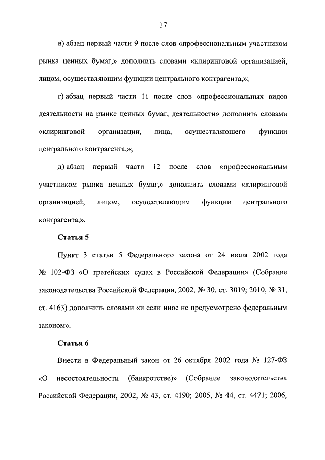 "О ВНЕСЕНИИ ИЗМЕНЕНИЙ В ОТДЕЛЬНЫЕ ЗАКОНОДАТЕЛЬНЫЕ АКТЫ РОССИЙСКОЙ ФЕДЕРАЦИИ В СВЯЗИ С ПРИНЯТИЕМ ФЕДЕРАЛЬНОГО ЗАКОНА "О КЛИРИНГЕ И КЛИРИНГОВОЙ ДЕЯТЕЛЬНОСТИ"