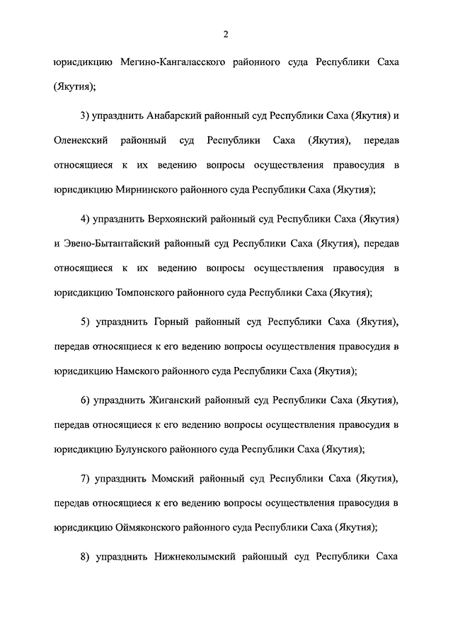 "ОБ УПРАЗДНЕНИИ НЕКОТОРЫХ РАЙОННЫХ СУДОВ РЕСПУБЛИКИ САХА (ЯКУТИЯ)"