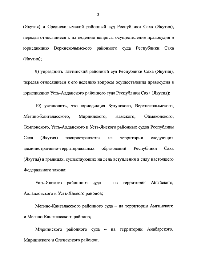 "ОБ УПРАЗДНЕНИИ НЕКОТОРЫХ РАЙОННЫХ СУДОВ РЕСПУБЛИКИ САХА (ЯКУТИЯ)"