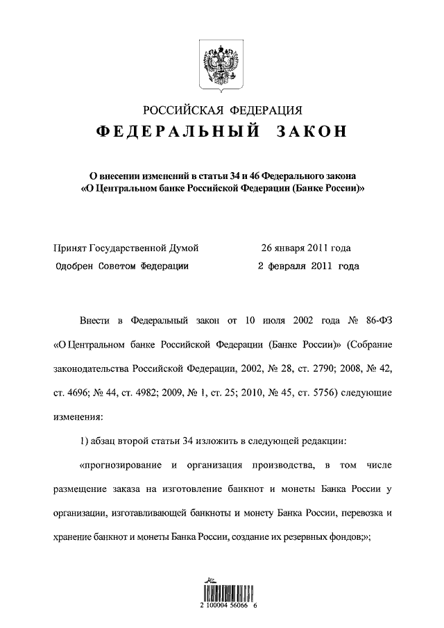 ФЕДЕРАЛЬНЫЙ ЗАКОН от 07.02.2011 N 10-ФЗ