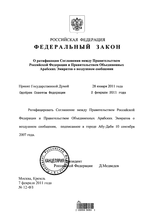 ФЕДЕРАЛЬНЫЙ ЗАКОН от 07.02.2011 N 12-ФЗ