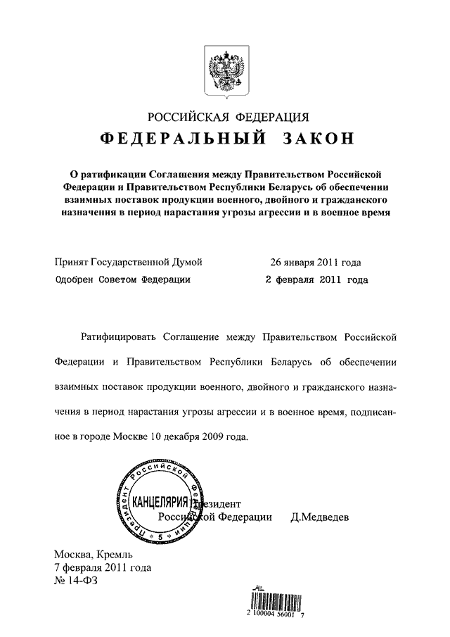 ФЕДЕРАЛЬНЫЙ ЗАКОН от 07.02.2011 N 14-ФЗ