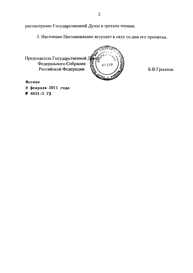 ПОСТАНОВЛЕНИЕ ГД ФС РФ от 08.02.2011 N 4831-5 ГД