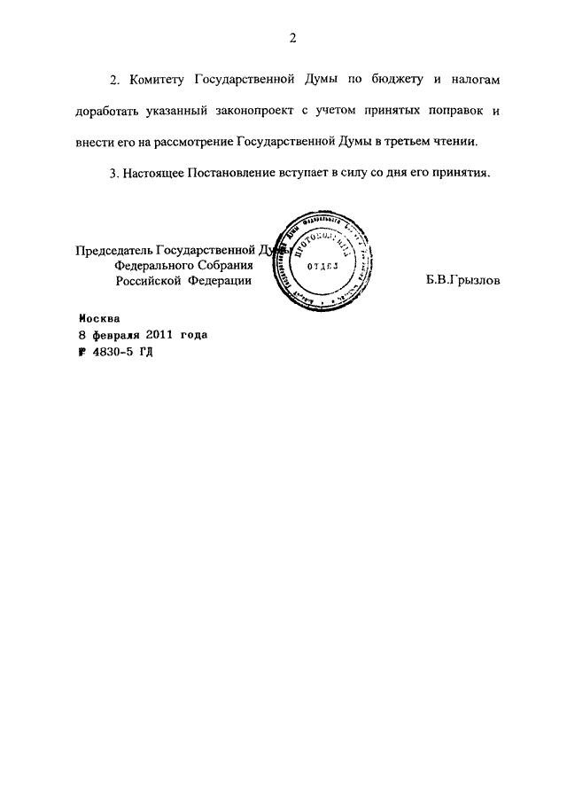 ПОСТАНОВЛЕНИЕ ГД ФС РФ от 08.02.2011 N 4830-5 ГД