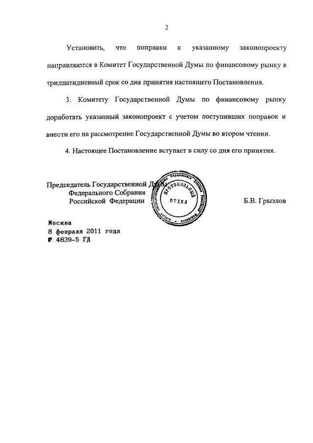 ПОСТАНОВЛЕНИЕ ГД ФС РФ от 08.02.2011 N 4839-5 ГД