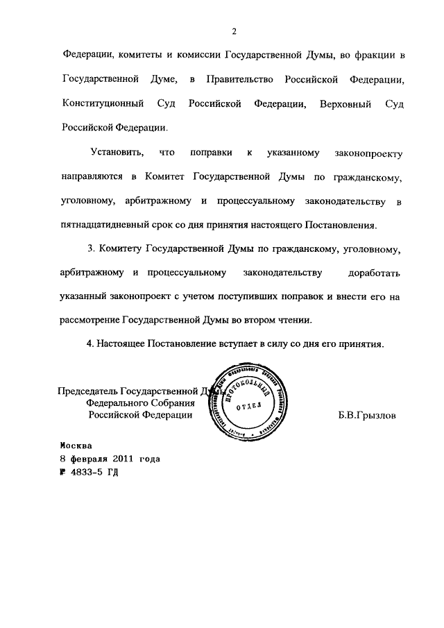 ПОСТАНОВЛЕНИЕ ГД ФС РФ от 08.02.2011 N 4833-5 ГД