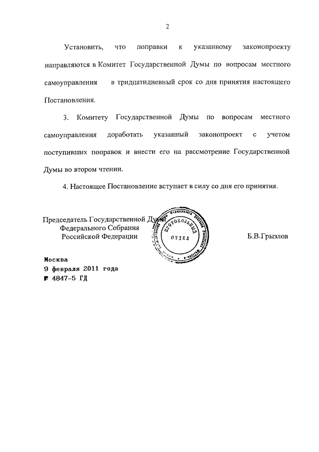 ПОСТАНОВЛЕНИЕ ГД ФС РФ от 09.02.2011 N 4847-5 ГД