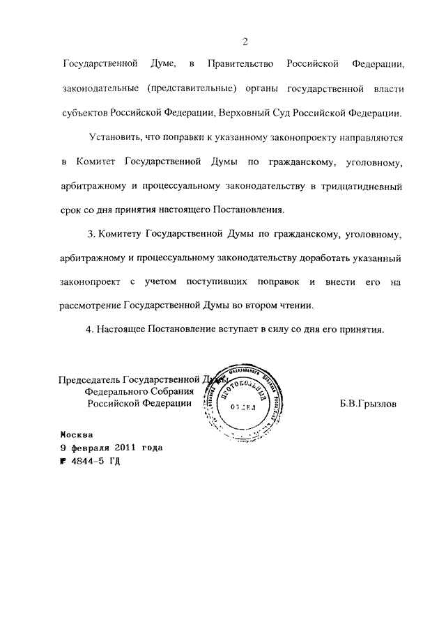 ПОСТАНОВЛЕНИЕ ГД ФС РФ от 09.02.2011 N 4844-5 ГД