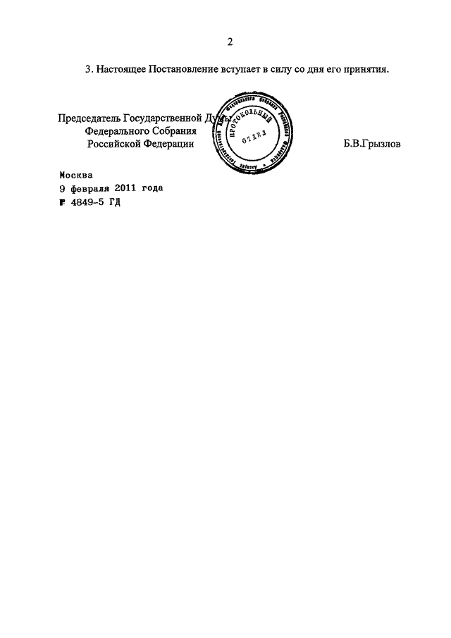 ПОСТАНОВЛЕНИЕ ГД ФС РФ от 09.02.2011 N 4849-5 ГД