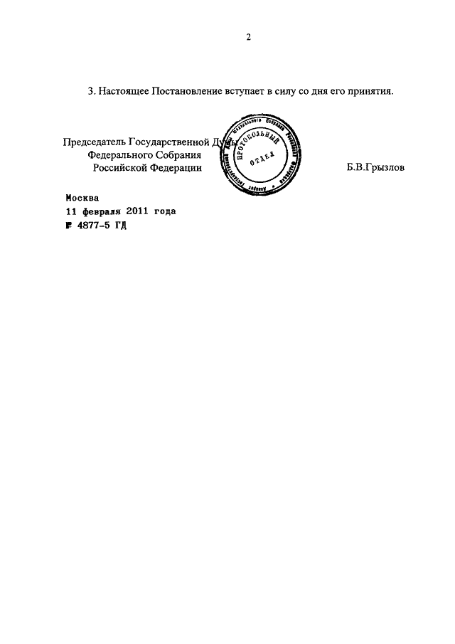 ПОСТАНОВЛЕНИЕ ГД ФС РФ от 11.02.2011 N 4877-5 ГД