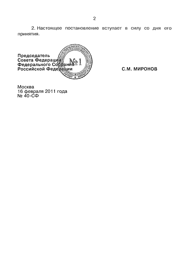 ПОСТАНОВЛЕНИЕ СФ ФС РФ от 16.02.2011 N 40-СФ