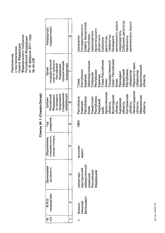 ПОСТАНОВЛЕНИЕ СФ ФС РФ от 16.02.2011 N 44-СФ