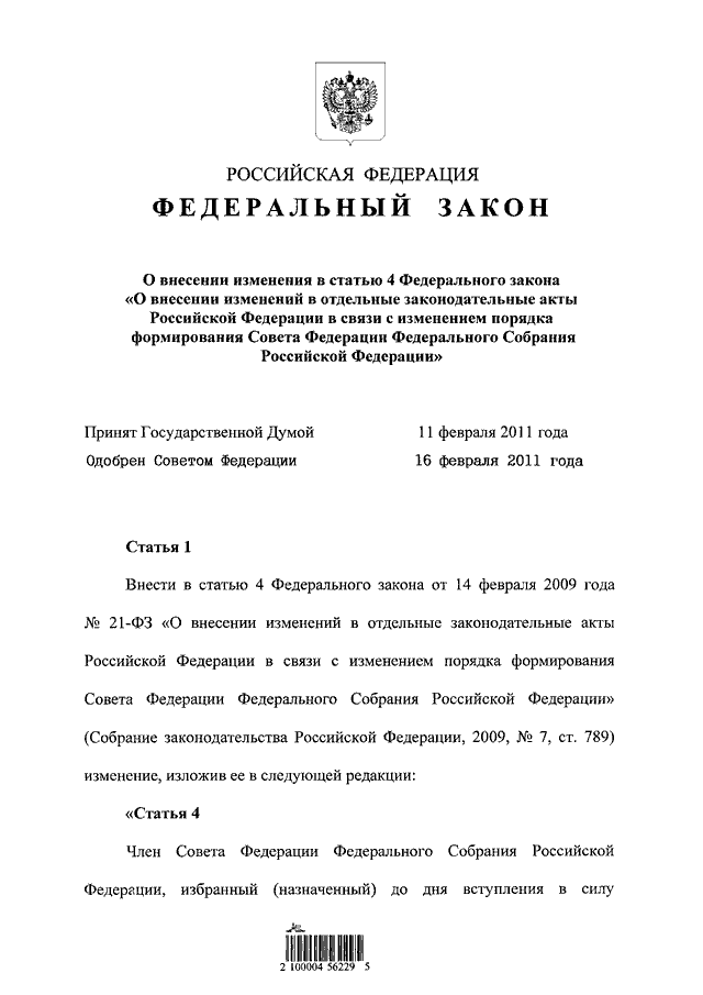 ФЕДЕРАЛЬНЫЙ ЗАКОН от 23.02.2011 N 16-ФЗ