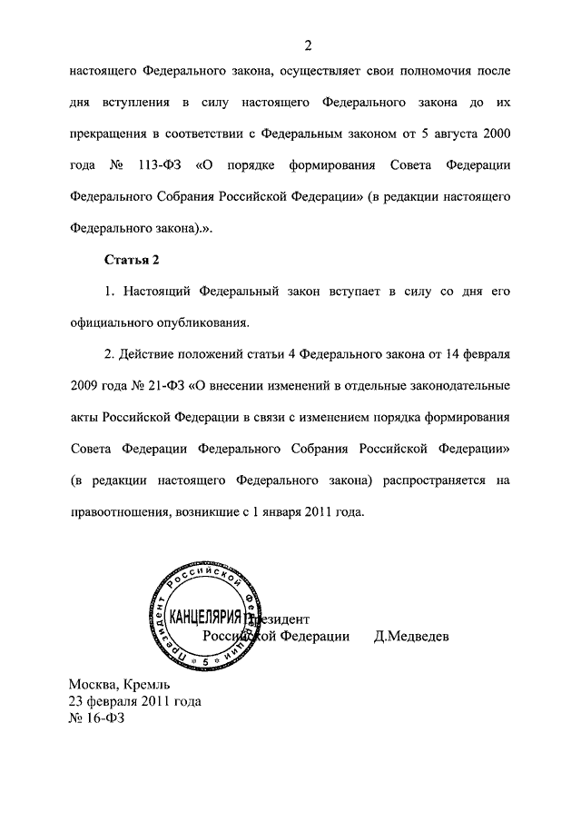 ФЕДЕРАЛЬНЫЙ ЗАКОН от 23.02.2011 N 16-ФЗ