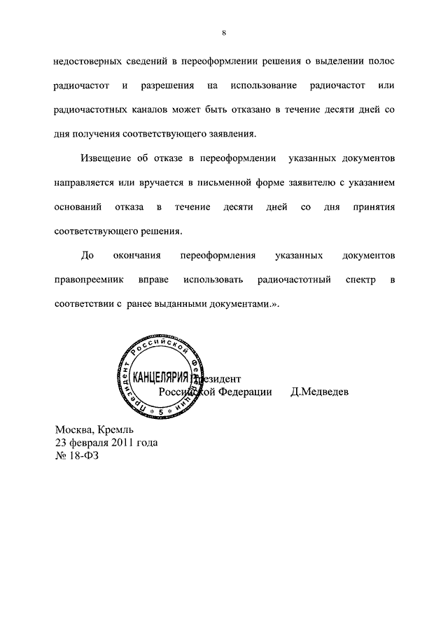 ФЕДЕРАЛЬНЫЙ ЗАКОН от 23.02.2011 N 18-ФЗ