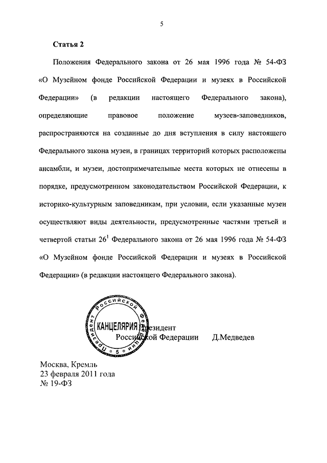 ФЕДЕРАЛЬНЫЙ ЗАКОН от 23.02.2011 N 19-ФЗ