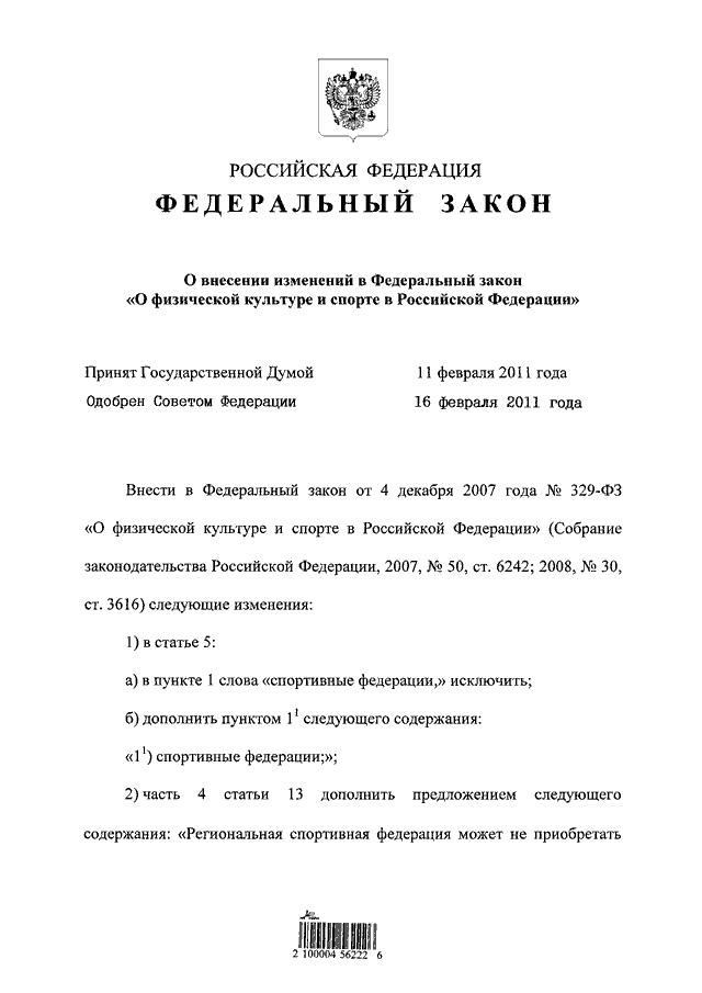 (принят ГД ФС РФ 11.02.2011)