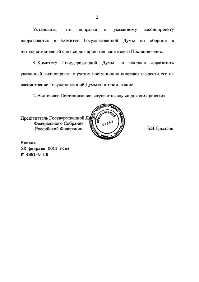 ПОСТАНОВЛЕНИЕ ГД ФС РФ от 22.02.2011 N 4891-5 ГД