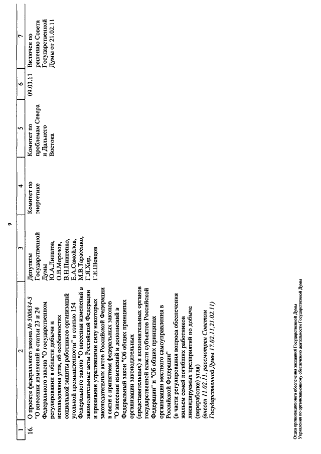 "О КАЛЕНДАРЕ РАССМОТРЕНИЯ ВОПРОСОВ ГОСУДАРСТВЕННОЙ ДУМОЙ С 9 ПО 25 МАРТА 2011 ГОДА"