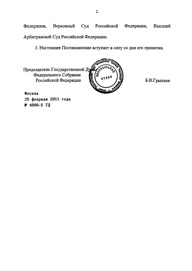 ПОСТАНОВЛЕНИЕ ГД ФС РФ от 25.02.2011 N 4898-5 ГД