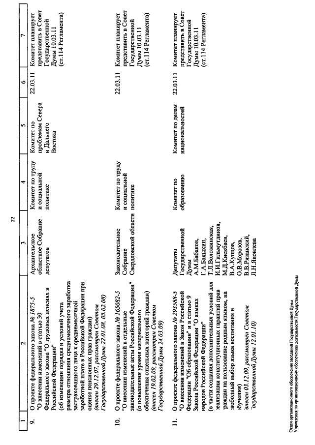 "О КАЛЕНДАРЕ РАССМОТРЕНИЯ ВОПРОСОВ ГОСУДАРСТВЕННОЙ ДУМОЙ С 9 ПО 25 МАРТА 2011 ГОДА"
