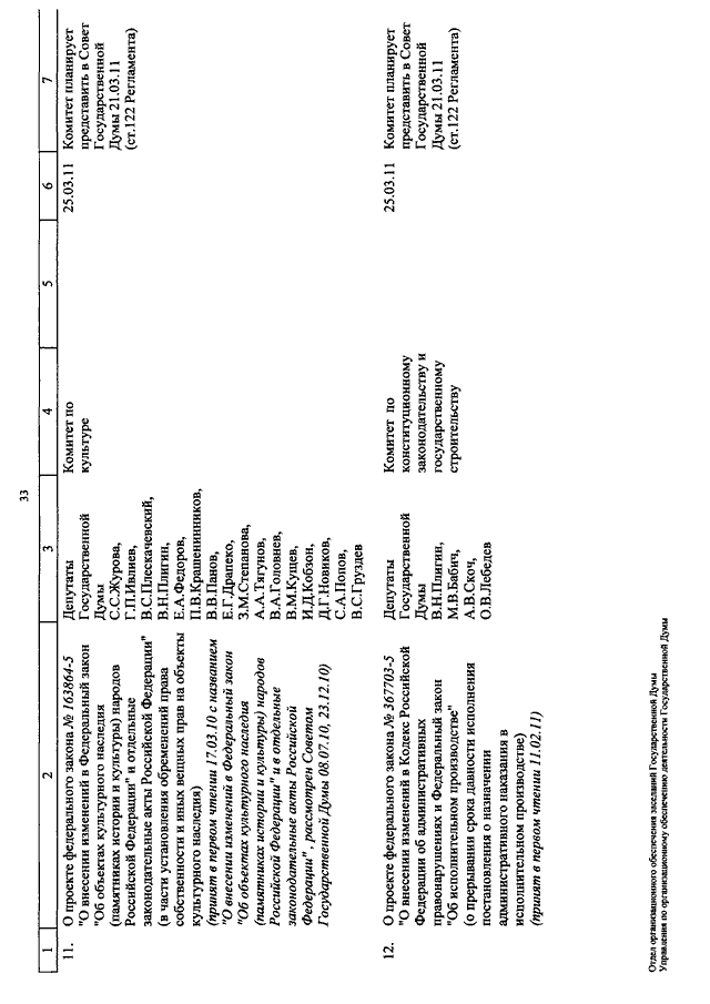 "О КАЛЕНДАРЕ РАССМОТРЕНИЯ ВОПРОСОВ ГОСУДАРСТВЕННОЙ ДУМОЙ С 9 ПО 25 МАРТА 2011 ГОДА"