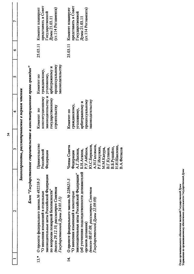"О КАЛЕНДАРЕ РАССМОТРЕНИЯ ВОПРОСОВ ГОСУДАРСТВЕННОЙ ДУМОЙ С 9 ПО 25 МАРТА 2011 ГОДА"