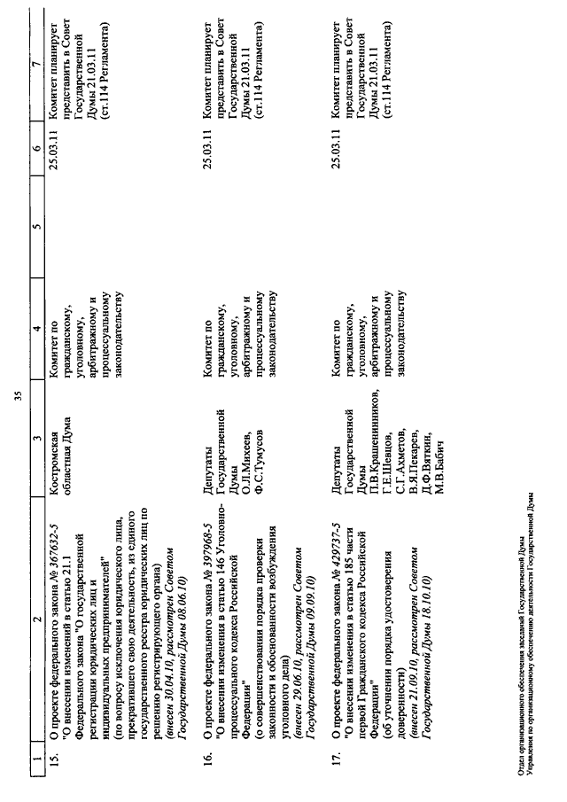 "О КАЛЕНДАРЕ РАССМОТРЕНИЯ ВОПРОСОВ ГОСУДАРСТВЕННОЙ ДУМОЙ С 9 ПО 25 МАРТА 2011 ГОДА"