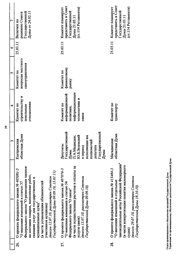 "О КАЛЕНДАРЕ РАССМОТРЕНИЯ ВОПРОСОВ ГОСУДАРСТВЕННОЙ ДУМОЙ С 9 ПО 25 МАРТА 2011 ГОДА"