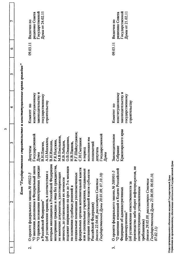 "О КАЛЕНДАРЕ РАССМОТРЕНИЯ ВОПРОСОВ ГОСУДАРСТВЕННОЙ ДУМОЙ С 9 ПО 25 МАРТА 2011 ГОДА"