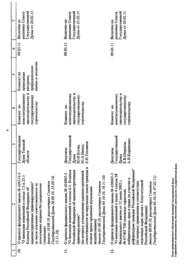 "О КАЛЕНДАРЕ РАССМОТРЕНИЯ ВОПРОСОВ ГОСУДАРСТВЕННОЙ ДУМОЙ С 9 ПО 25 МАРТА 2011 ГОДА"