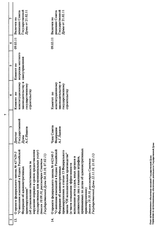 "О КАЛЕНДАРЕ РАССМОТРЕНИЯ ВОПРОСОВ ГОСУДАРСТВЕННОЙ ДУМОЙ С 9 ПО 25 МАРТА 2011 ГОДА"