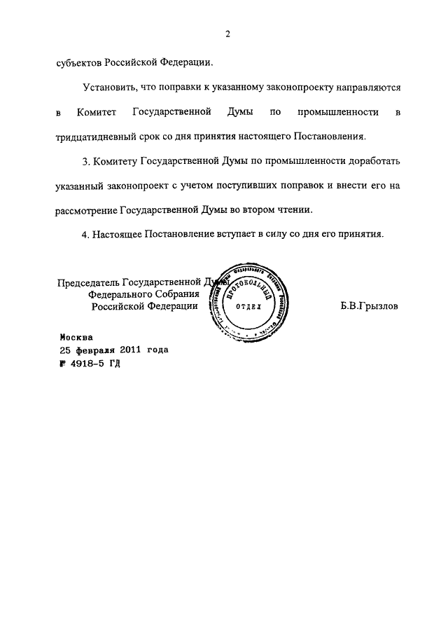 ПОСТАНОВЛЕНИЕ ГД ФС РФ от 25.02.2011 N 4918-5 ГД