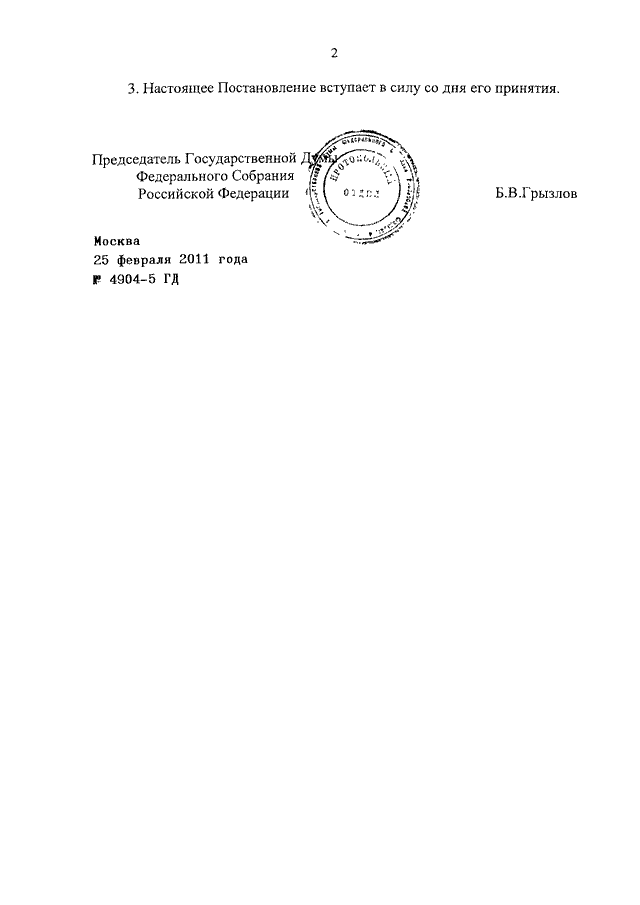 ПОСТАНОВЛЕНИЕ ГД ФС РФ от 25.02.2011 N 4904-5 ГД