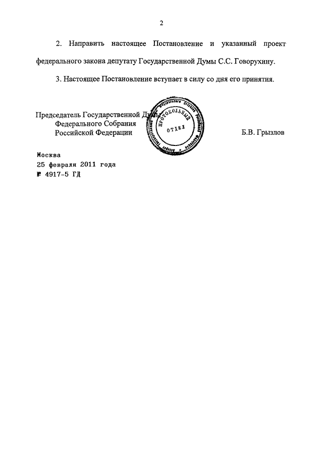 ПОСТАНОВЛЕНИЕ ГД ФС РФ от 25.02.2011 N 4917-5 ГД