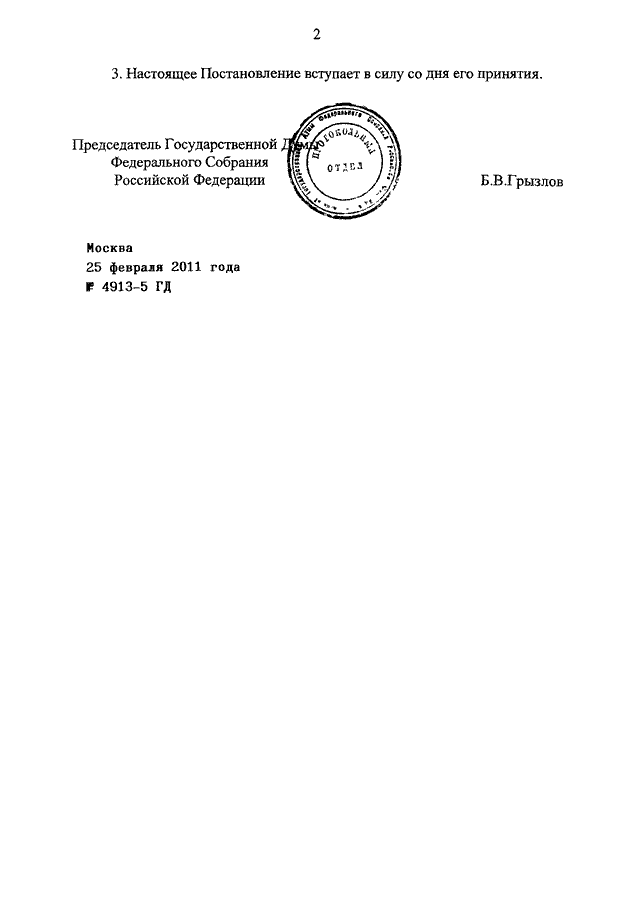 ПОСТАНОВЛЕНИЕ ГД ФС РФ от 25.02.2011 N 4913-5 ГД