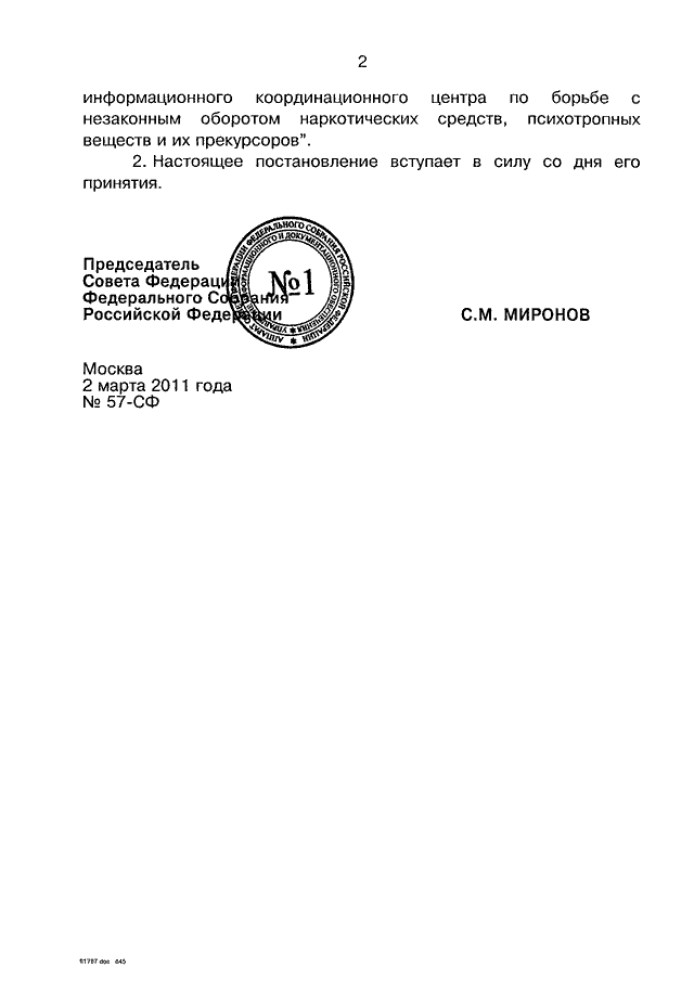 ПОСТАНОВЛЕНИЕ СФ ФС РФ от 02.03.2011 N 57-СФ