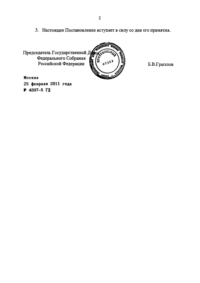 ПОСТАНОВЛЕНИЕ ГД ФС РФ от 25.02.2011 N 4897-5 ГД