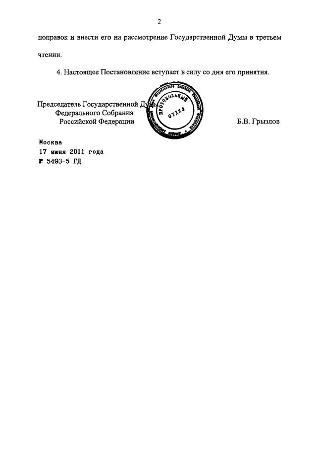ПОСТАНОВЛЕНИЕ ГД ФС РФ от 17.06.2011 N 5493-5 ГД